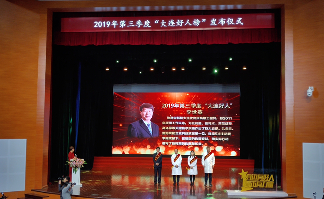 10月25日下午,由大連市委宣傳部、大連市文明辦主辦的2019年第三季度“大連好人榜”發(fā)布儀式在大連海事大學(xué)舉行,現(xiàn)場公布敬業(yè)奉獻、助人為樂、見義勇為、誠實守信、孝老愛親5種類別23名“大連好人”。中國科學(xué)院大連化學(xué)物理研究所李世英高級工程師獲評敬業(yè)奉獻“大連好人”。最美奮斗者、時代楷模、全國道德模范曲建武為李世英頒獎。