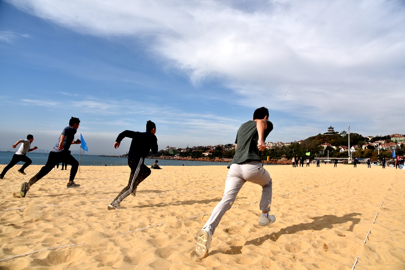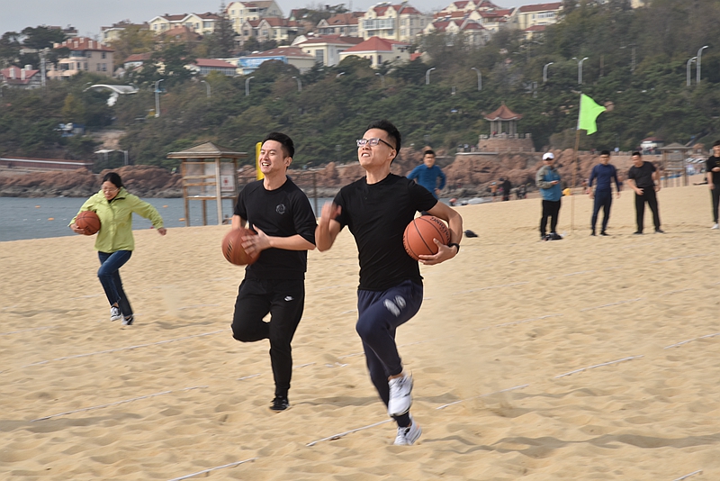 8點30分,比賽正式拉開帷幕,沙灘上立刻熱鬧起來。湛藍的海水,柔軟的沙灘,洋溢的笑臉,沙灘運動會現場一派生機勃勃的景象。籃球射門比賽考驗的是足下功夫的力量與精度,二人三足注重的是團隊的默契配合,60米托球跑要求速度與技巧的完美結合,60米跑考驗爆發力,跳繩、踢毽子、鉛球、跳遠等項目競爭激烈。經過三個小時緊張激烈的比賽,這場既充滿趣味性又考驗團隊凝聚力的沙灘運動會圓滿完成各項比賽項目,順利落下帷幕。