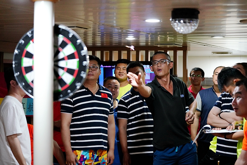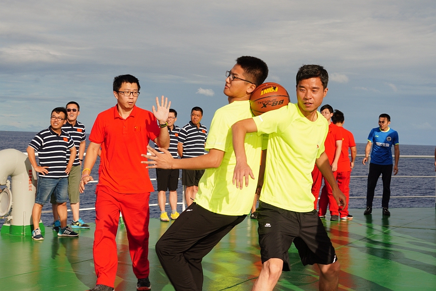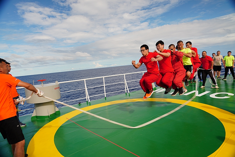 正在西太平洋執行國家自然科學基金委2019年共享航次的“科學”號科考船在海上同步舉行了別開生面的趣味運動會。根據船上空間和器械條件,共設置集體跳繩、六人接力托球跑、雙人夾球跑三個集體項目,以及乒乓球、地滾球、投籃、飛鏢四個個人項目,為緊張的科考工作增添了樂趣。
