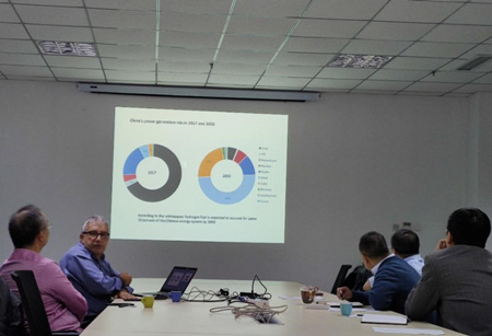應(yīng)研究所多相催化轉(zhuǎn)化研究組研究員莊慶發(fā)的邀請(qǐng),加拿大魁北克大學(xué)教授Richard Chahine和武漢理工大學(xué)教授肖金生一行來(lái)所開(kāi)展學(xué)術(shù)交流。訪問(wèn)期間,Richard Chahine做了題為“Role of hydrogen in energy transition”和“Hydrogen storage: From material properties to system design”的學(xué)術(shù)報(bào)告。報(bào)告主要介紹了氫作為清潔能源載體在能源的生產(chǎn)、儲(chǔ)存和使用鏈條中的巨大應(yīng)用潛力,以及具體到儲(chǔ)存環(huán)節(jié)如何將材料性質(zhì)調(diào)控與工程系統(tǒng)設(shè)計(jì)進(jìn)行有機(jī)結(jié)合。