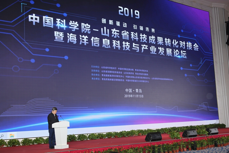 11月15日,由山東省科學技術廳、中國科學院沈陽分院、青島市科學技術局聯合主辦、青島西海岸新區管委和中國科學院海洋大科學研究中心共同承辦的“中國科學院-山東省科技成果轉化對接會暨海洋信息科技與產業發展論壇”在青島舉行。吳立新院士、夏佳文院士、宋君強院士等知名專家學者,山東省科技廳、中科院條件保障與財務局、中科院沈陽分院、山東省發改委、山東省海洋局、青島市有關部門負責同志,以及來自中科院16家院屬單位、山東省15個地市科技相關部門、省內外160余家企業、部分高校和科研機構等近500人參加活動。山東省科技廳黨組成員、青島國家海洋科學研究中心主任李儲林致辭并主持開幕式。青島西海岸新區副區長隋斌、青島市海洋發展局局長茍團年、青島市科技局局長呂鵬、中科院沈陽分院副院長馬越紅分別致辭。