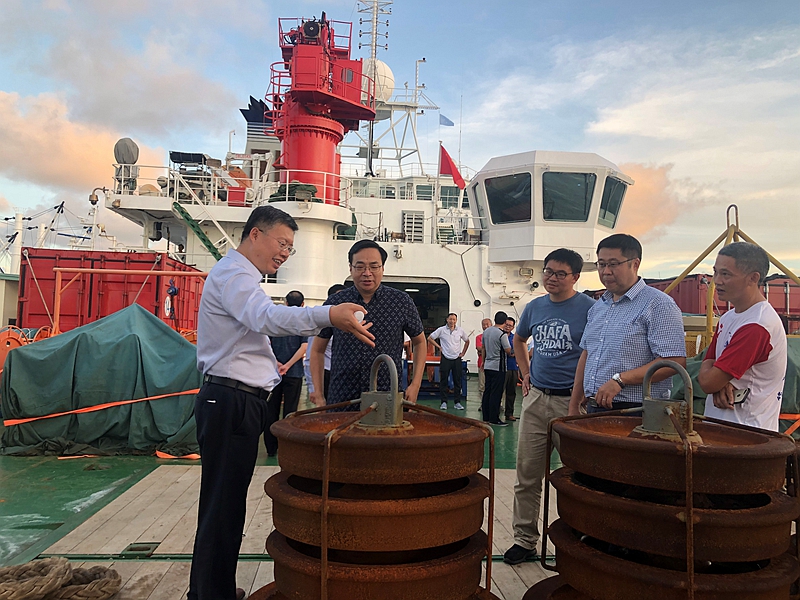 11月18日,正在西太平洋執行國家自然科學基金委2019年共享航次的“科學”號科考船圓滿完成第一航段任務,順利靠泊密克羅尼西亞聯邦波納佩港補給,海洋所黨委書記王輝及科考船運管中心、國際合作辦相關人員前往迎接。靠港期間,中國駐密克羅尼西亞大使館黃崢大使率大使館相關人員參觀了“科學”號并調研了本航次科考工作進展。
