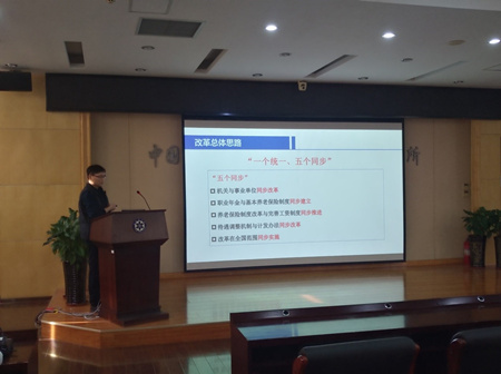 11月25日,青島能源所組織召開了第二屆職工代表大會第八次全體會議。人事教育處副處長蘇華做了研究所《事業單位養老保險改革政策及研究所相關工作介紹》的匯報,詳細介紹了自2014年10月國家啟動事業單位養老保險改革工作以來,研究所參與事業單位養老保險改革的政策依據和工作進展,重點介紹了按照國家要求在山東省建立社會保險賬戶、設立基本養老保險和職業年金項目、改革后養老保險基數計算方法、改革后人均月繳納社保上調水平、改革后新政策下退休待遇核算方法等內容。人事教育處工作人員對職代會成員提出的“養老保險基數計算組成”、“人均月社保繳費上調水平”、“退休待遇核定”等具體問題做了詳細解答。