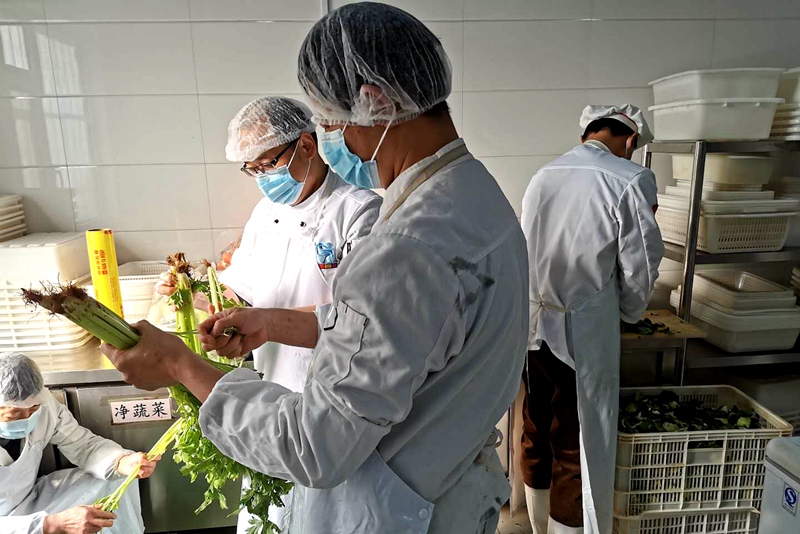 這是疫情防控期間食堂忙碌而普通的一天,也是戰斗在防疫一線的后勤工作人員辛勤工作的縮影。正是他們的平凡普通和愛崗敬業,才讓每位職工吃上了安全營養放心的午餐。
