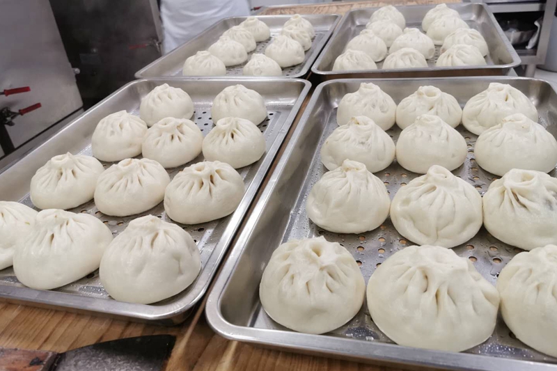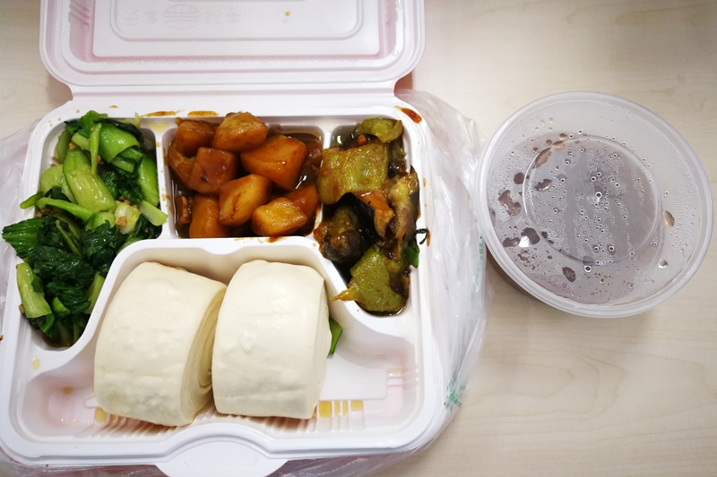 新冠肺炎疫情發生以來,為減少人員聚集,食堂取消了堂食,以盒飯套餐形式供餐。每天早上9點,各部門訂餐聯絡人將本部門當天所需午餐數量反饋給王保新,他會根據實際需求掌握備菜數量。為了確保營養均衡并照顧大家的口味,每天的套餐分成了A、B兩種,配套一份湯,每種套餐的主食都可以自選米飯或者面食。另外,還有單獨的包子等進行供應。