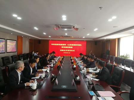 5月13日由研究所黨委書記彭輝帶隊,黨委副書記許輝、能源應用技術研究室、能源作物分子育種研究組、先進有機功能材料與器件研究組、知識產權與成果轉化處等部門負責人一行赴青島城投集團訪問交流并簽署戰略合作協議。城投集團黨委書記、董事長邢路正,黨委委員、副總經理高玉貞,集團招商辦、實業投資集團、基金管理中心、新能源公司、環境資源公司等負責人共同出席。
