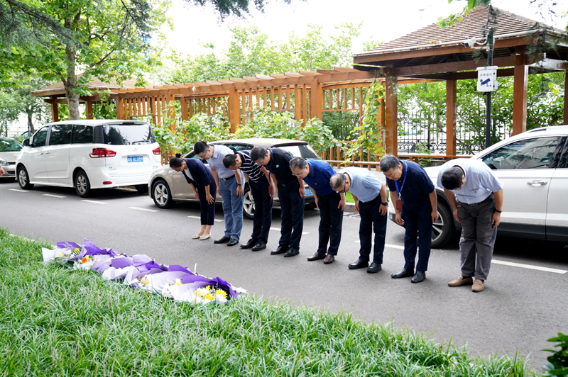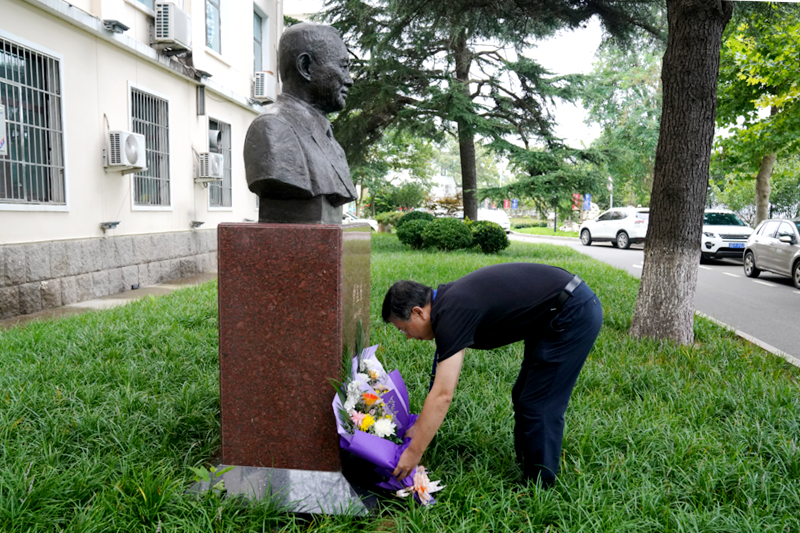 所領導班子成員向童第周、曾呈奎銅像鞠躬