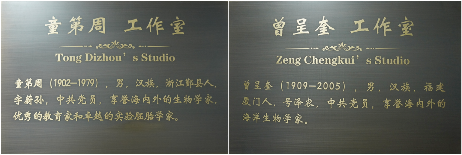 7月31日上午,已故院士童第周、曾呈奎、毛漢禮、劉瑞玉、秦蘊珊、張福綏工作室紀念銘牌揭牌儀式在海洋所舉行。所領導班子成員及所長助理參加揭牌儀式。