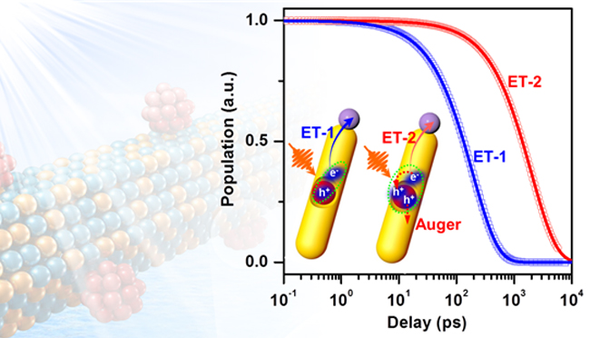 多電荷轉(zhuǎn)移過程在自然光合作用和人工光催化體系普遍存在。由于材料的光吸收截面和激發(fā)光源的光子通量所限制,通常很難在分子或納米材料中同時激發(fā)出多個電子空穴對并驅(qū)動多電荷同時轉(zhuǎn)移。更為常見的是,捕光材料逐個吸收光子并在每個光子吸收后驅(qū)動單個電荷轉(zhuǎn)移,從而在催化中心實現(xiàn)多電荷逐步累積。在這種逐步電荷分離的過程中,由于電子與空穴轉(zhuǎn)移速率的欠匹配(電子轉(zhuǎn)移速率往往要快于空穴轉(zhuǎn)移)以及催化劑轉(zhuǎn)化速率較慢,捕光材料和催化材料上不可避免地會出現(xiàn)多余電荷。在納米尺度,這些多余電荷的存在將導致強烈的多體效應及庫倫勢壘,可能是納米材料中多電荷轉(zhuǎn)移的瓶頸所在。
