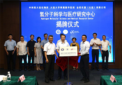 在簽約儀式上,孟長功、蔡睿和李建立為“氫分子科學與醫療研究中心”揭牌。金鎧儀器為“氫分子科學與醫療研究中心”提供100臺價值60萬元的小氫新TM便攜式氫氧儀(型號D-HO-001)。該儀器以鄧德會團隊自主研發的整體式非貴金屬催化劑為核心,由該團隊與金鎧儀器共同研制,并已獲得中國GB、歐盟CE、歐盟RoHS和美國FDA認證。此次提供的儀器將用于新華醫院氫醫療的臨床研究和大連化物所氫分子的科學研究。