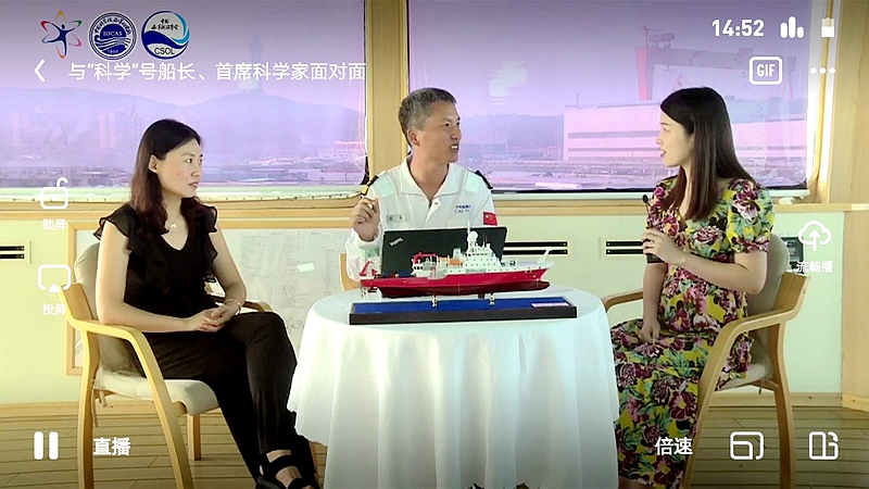 下午的訪談中,“科學”號船長陳修峰、航次首席科學家周慧與大家分享了海上科考的經歷和故事,揭秘了遠洋科學考察的工作和生活,并針對“船長、首席科學家們如何進行科考作業配合”“海上科考會面臨哪些挑戰和困難”“長時間出海如何克服枯燥和疲勞”等同學們感興趣的話題進行了解答和互動。