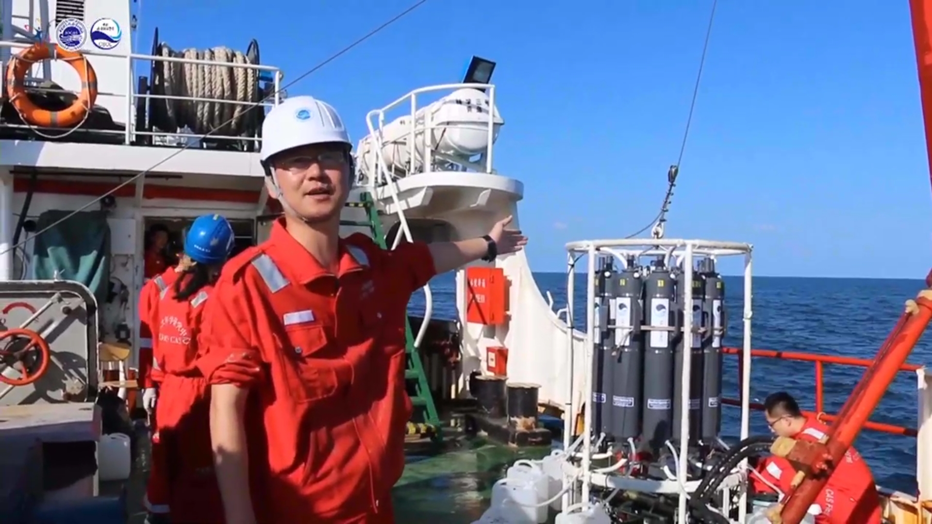 汪嘉寧研究員展示西太平洋潛標布放作業