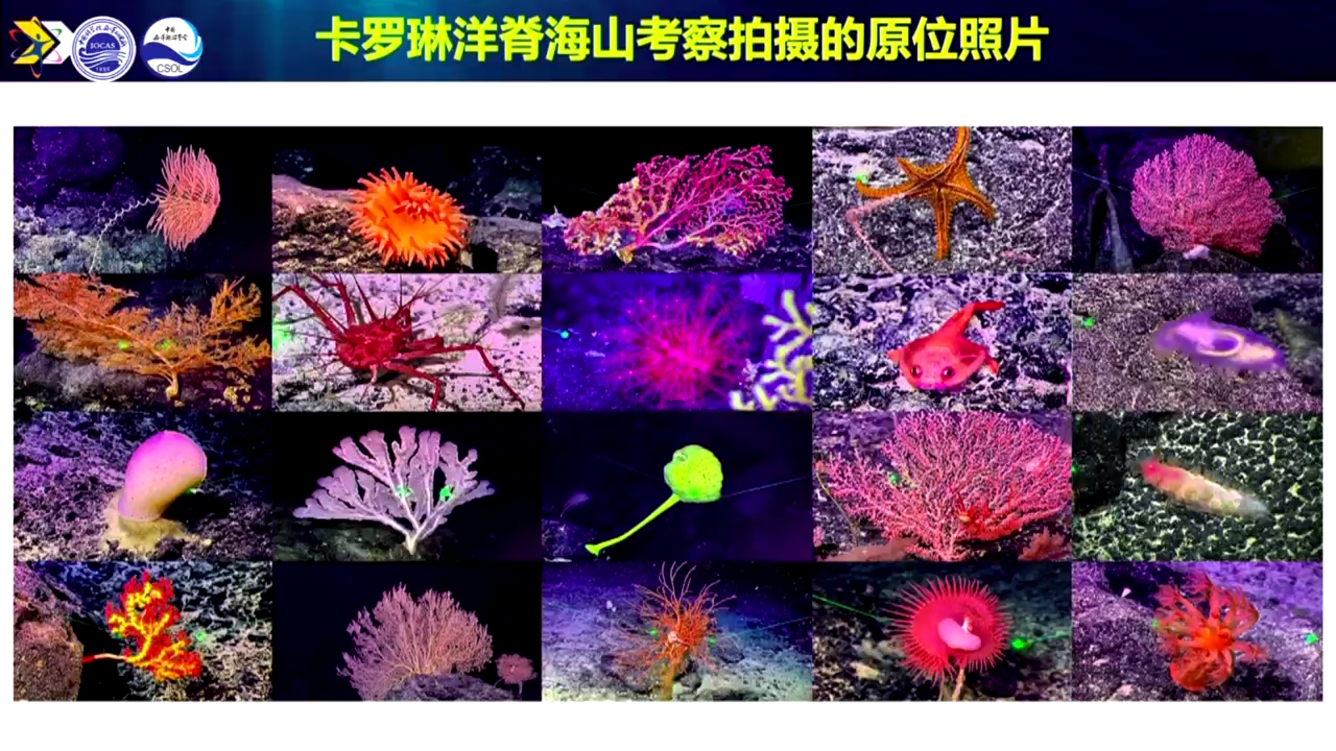 徐奎棟研究員展示海山考察拍攝的深海生物