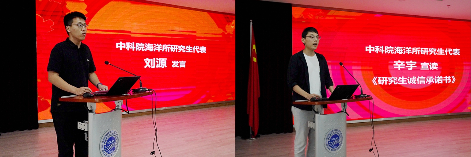 新生代表劉源在發言中表示,能夠進入海洋所這支海洋科技國家隊學習深造,內心充滿自豪。在未來的學習中,會繼承和發揚老一輩科學家求真務實、勇攀高峰的科學精神,遵守科研道德規范,勤奮學習刻苦鉆研,修身立德志存高遠,以實際行動詮釋新時代年青一代的責任與擔當。