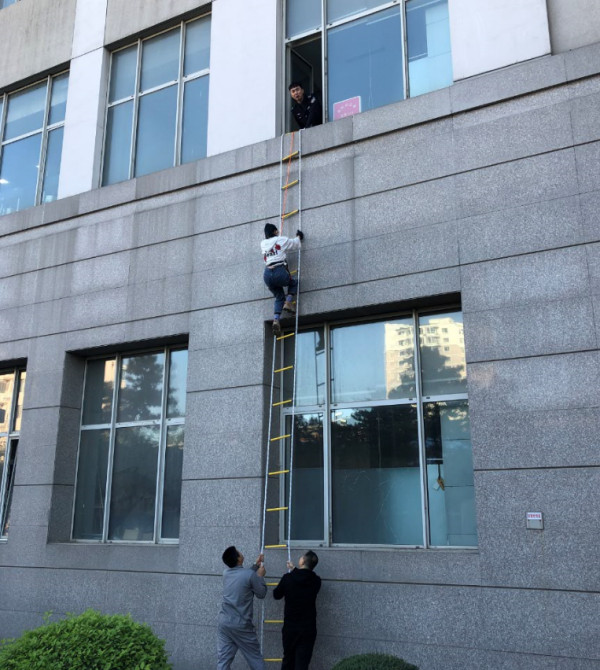 為了使疏散演練達(dá)到預(yù)期效果,提升演練的真實(shí)感,本次演練在樓內(nèi)投放了煙霧彈,由專業(yè)消防培訓(xùn)教官全程指揮。在演練過(guò)程中,各樓職工和學(xué)生都能夠認(rèn)真地按照演練預(yù)案,捂住口鼻,低姿、安全、有秩序地從各安全通道和出口迅速疏散到樓外。參加演練的全部人員安全撤離到大樓外面的安全地帶后,演習(xí)總指揮遼寧益安消防知識(shí)宣傳中心的孫明龍主任對(duì)本次消防演練情況進(jìn)行了總結(jié),他選取了今年沈陽(yáng)發(fā)生的有代表性的燃?xì)饣馂?zāi)爆炸、電器火災(zāi)爆炸事故案例為大家講解了有關(guān)燃?xì)夂碗娖魇褂冒踩WR(shí)及注意事項(xiàng)。此外,為了使職工和學(xué)生能夠了解掌握更多的消防逃生方法,本次演練還增加了消防軟梯、速降繩等內(nèi)容及實(shí)地演練互動(dòng)等環(huán)節(jié),激發(fā)了廣大職工學(xué)生參與的積極性。本次演練活動(dòng)進(jìn)一步提升了全所職工和學(xué)生的消防安全意識(shí)和逃生自救的技能,達(dá)到了較好的演練效果。
