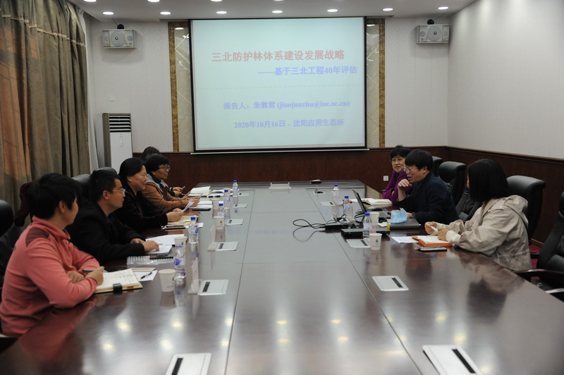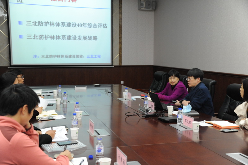首先,郝欣代表沈陽生態所歡迎九三學社遼寧省委課題組來所調研。米志芳介紹了課題組成員及本次調研的重點。朱教君研究員作為我國防護林領域專家,向調研組介紹了三北防護林體系建設40年綜合評估的情況,包括工程的成效、經驗、存在問題與對策建議,以及針對遼寧省域開展三北工程建設提出相關問題和建議。隨后,雙方就三北工程在遼寧省實踐中的具體問題進行了熱烈交流和研討。