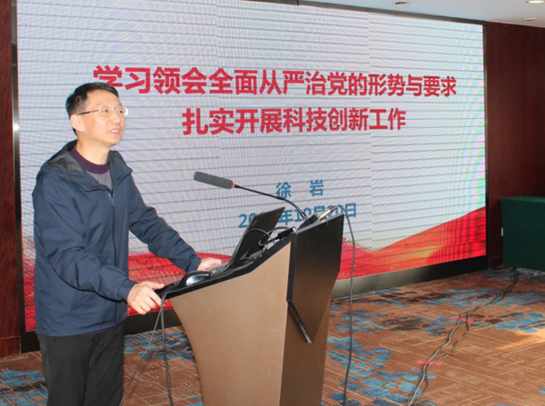 黨委書記、副所長徐巖作《學習領會全面從嚴治黨的形勢與要求,扎實開展科技創新工作》報告