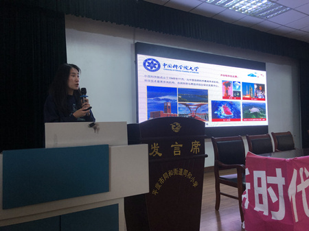 副研究員李鴻妹以“海洋-拯救全球變暖的大英雄”為題,生動有趣的講解了科學家發現海洋、調查海洋的科考過程,并探索了海洋在吸收溫室氣體二氧化碳中發揮的作用。博士研究生張妍以“微藻—奇妙的水中小精靈”為題,深入淺出的講解科學家如何認識、培養、開發不同種類的微藻以及其在能源、環境、食品、健康等領域不可替代的作用。碩士研究生王鑫從介紹傳統能源的種類和特點入手,運用視頻與講解結合的方式介紹了能源的形成過程,并且講解了新型能源的種類和優點以及發展新型能源的原因和急迫性。