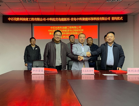 11月2日,青島能源所與中石化勝利油建工程有限公司(簡稱“勝利油建”)、青島中科聚能環??萍加邢薰?簡稱“中科聚能”)共同舉行合作簽約儀式,三方建立全面合作伙伴關系,依托各自優勢,大力開展生物天然氣項目的合作和推廣。