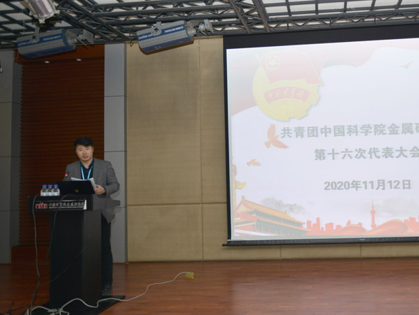 大會由金屬所人事處王申瑞同志主持。會上,金屬所綜合辦公室副主任、團委書記趙翔宇同志代表共青團中科院金屬所第十五屆委員會向大會作了工作報告。報告系統總結了金屬所第十五屆委員會的工作。過去幾年來,所團委以習近平新時代中國特色社會主義思想為指導,深入貫徹落實黨的十八大、十九大及歷次全會以及共青團十八大和十八屆二中、三中、四中全會精神,認真執行所黨委和上級團組織的決策部署,強化政治引領,進一步夯實基層團組織工作基礎,加強團組織干部隊伍建設,從團員青年實際需求出發,開展了系列主題鮮明的特色活動,對研究所創新文化建設和各項事業發展起到了積極的促進作用。報告客觀分析了工作中存在的不足,并從強化政治引領,加強團員青年的思想教育和意識形態,緊密圍繞促進研究所中心任務和青年成長成才,加強團組織自身建設,加強團組織的群眾性建設等幾個方面,對今后的金屬所團建工作提出了建議。