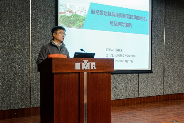 中國科學院金屬研究所副所長劉崗研究員致歡迎詞。中國航發四川燃氣渦輪研究院鐘燕研究員、沈陽工業大學呂曉仁教授、沈陽航空航天大學王賀權教授、東北大學陳明輝教授、中國航發沈陽黎明航空發動機有限責任公司張春剛研究員、中國科學院金屬研究所薛偉海博士分別作了題為“航空發動機新材料新工藝需求”、“輕質高強耐熱鎂合金摩擦學研究”、“航空發動機葉片高阻尼無機納米涂層消減振機理研究”、“基于高溫氧化的自潤滑高熵合金成分調控研究”、“航空發動機對特種工藝的需求”、“航空發動機典型摩擦副微動損傷機制及應對策略”的學術報告。