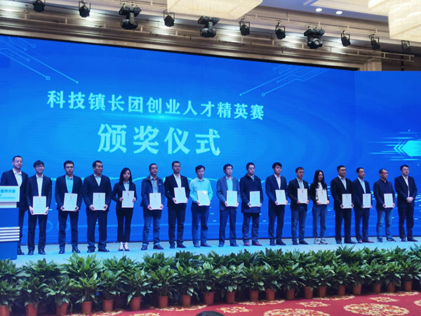 “蓄熱式取暖器用邁科思陶瓷的研發及產業化”獲得科技鎮長團創業人才精英賽三等獎,王曉輝研究員(左四)領獎