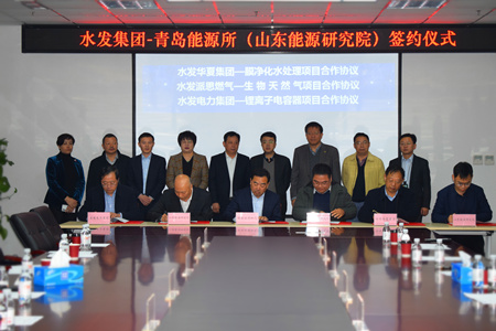 水發(fā)華夏集團(tuán)、水發(fā)派思燃?xì)?、水發(fā)電力集團(tuán)分別與山東能源研究院簽訂“凈水處理”、“生物天然氣”、“鋰離子電容器”三個(gè)項(xiàng)目合作協(xié)議。以該三個(gè)項(xiàng)目為合作切入點(diǎn),開展關(guān)鍵技術(shù)攻關(guān)與裝備研制,合作建設(shè)產(chǎn)業(yè)化示范項(xiàng)目。