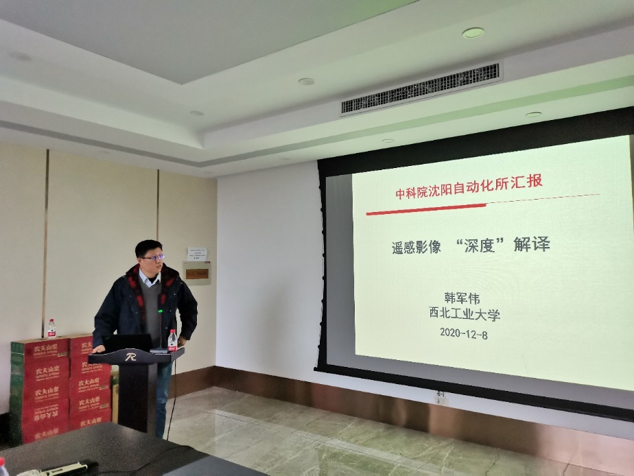 韓軍偉以《遙感影像‘深度’解譯》為題作報告,講解了影像解譯這一項在遙感方面具有重要的民用和軍事應用價值的關鍵技術。遙感影像解譯是遙感大數據信息挖掘與提取的關鍵技術,具有重要的民用和軍事應用價值,也是近年來遙感應用領域的研究熱點問題。韓軍偉首先介紹了深度學習在高分遙感影像解譯方面的一些典型應用,針對這一前沿領域發布了兩個公開的高分圖像數據庫。其次,針對高分遙感影像解譯存在的一些難點問題和不同的應用需求,提出了幾種基于弱監督學習/全監督學習的目標檢測和圖像場景分類方法。報告現場氣氛熱烈,與會人員積極踴躍參與提問與討論。