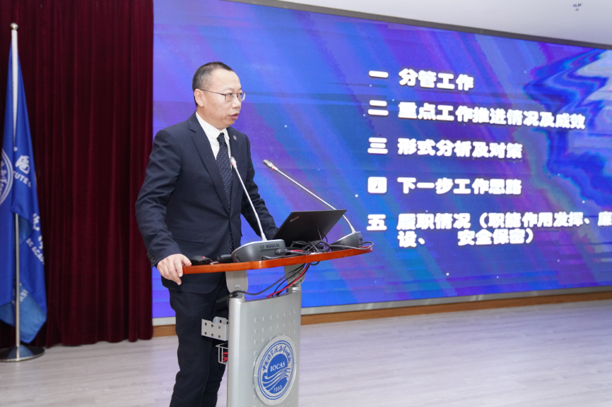 會上,黨委書記王輝,常務副所長楊紅生,副所長李超倫,黨委副書記、紀委書記畢偉分別就個人分管工作作專題報告和個人述職述廉。各實驗室主任分別匯報了研究室2020年工作進展及2021年發展思路。