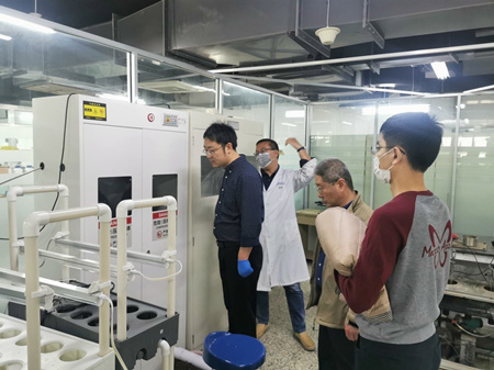 在我所綜合處陪同下,檢查組現場檢查了能源樓、生化樓各實驗室安全管理情況,圍繞實驗室?;饭芾怼⑻胤N設備管理、個人防護、危廢處置、用電用氣安全等方面進行了全方位的仔細排查,并結合大連化物所安全管理經驗,針對可能出現的隱患,現場指導實驗人員注意防范。