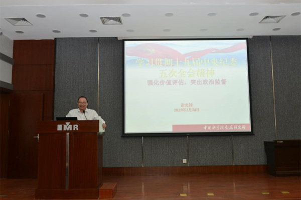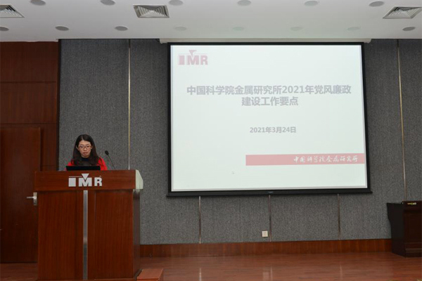 紀檢與審計處副處長(主持工作)王殿珊介紹了金屬所2021年黨風廉政建設工作要點,結合院相關工作部署要求,詳細介紹了研究所年度重點工作,并對全面從嚴治黨的形勢和要求、支部書記黨風廉政建設責任內容等進行了宣講。