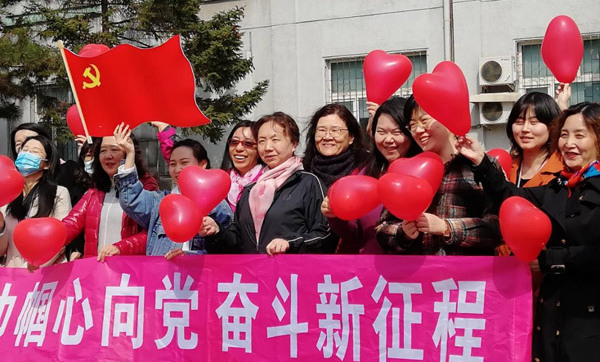 上午11時許,女職工興高采烈,手持紅色氣球來到廣場,廣場上立刻成為一片紅色的海洋。她們紛紛與黨旗合影,用燦爛的笑容、飽滿的精神面貌表達聽黨話、跟黨走的決心,“我和黨旗合個影”充分抒發(fā)了金屬所女職工對黨的深厚感情和美好祝福。在工會主席孫東明熱情洋溢的講話后,健步走號令響起,大家從葛庭燧樓前出發(fā),沐浴著陽光、春風和花香,健步走在風景秀麗的南運河岸上,盡情享受健身走的快樂。