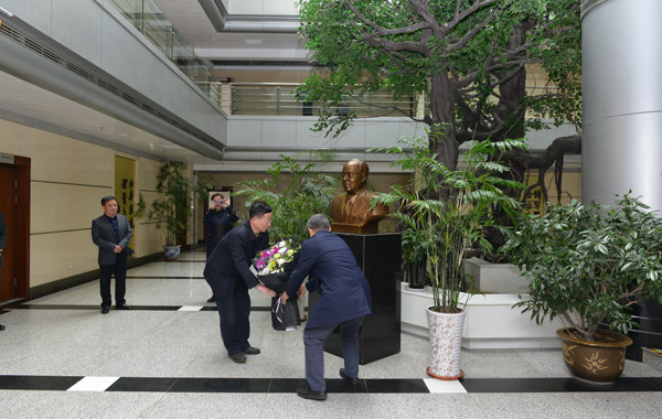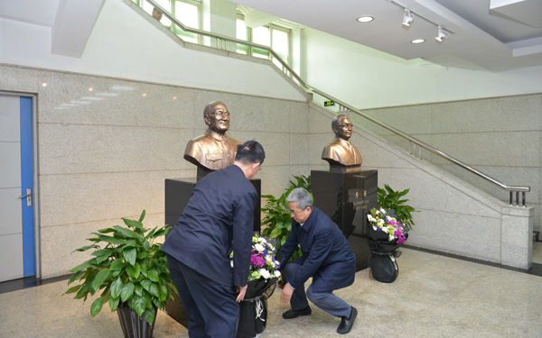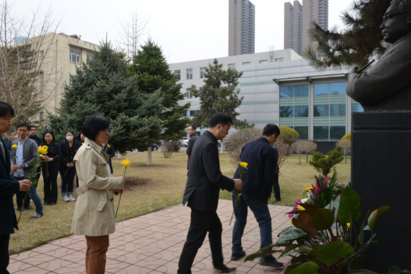 左良所長、孫曉峰副所長共同為李薰先生、葛庭燧先生、師昌緒先生、郭可信先生塑像敬獻了花籃,青年職工和研究生向塑像敬獻了菊花,大家向塑像鞠躬,表達了對金屬所前輩們的崇高敬意和深切懷念。