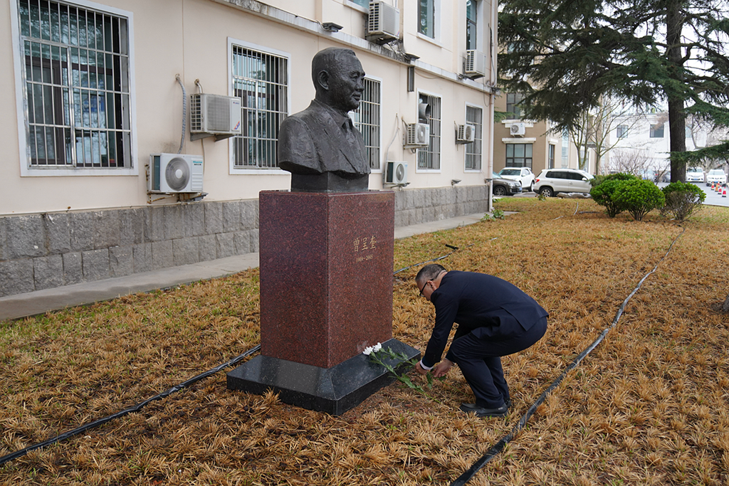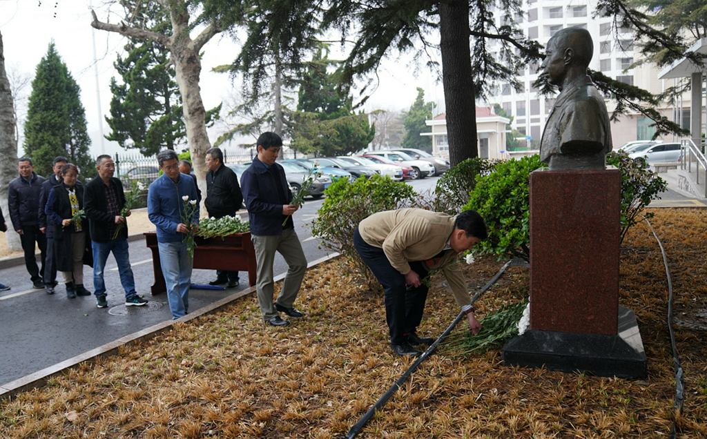 大家在童第周、曾呈奎兩位科研先驅(qū)銅像前靜默鞠躬,并依次上前敬獻鮮花,表達對先輩的緬懷與敬重。