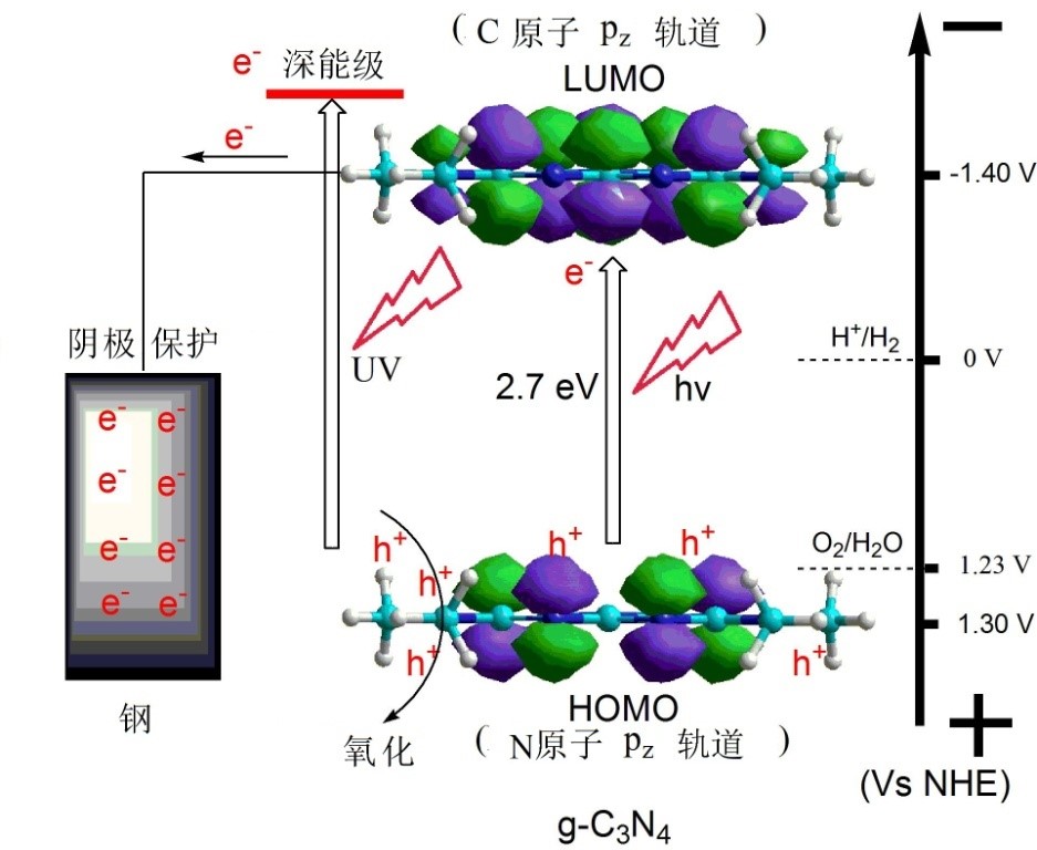 類石墨相 g-C3N4材料的光電化學陰極保護機制示意圖