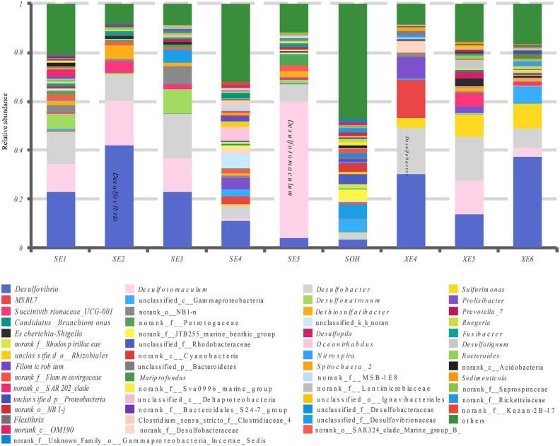 鋼鐵腐蝕銹層中細菌群落在屬水平上的相對豐度