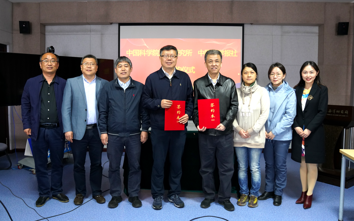 4月21日,中國科學報社山東記者站共建協議簽約儀式在海洋所舉行,海洋所黨委書記王輝與中國科學報社黨委書記劉峰松代表雙方簽署協議。雙方綜合處、人事處相關負責同志參加座談。根據協議,中國科學報社山東記者站將依托海洋所具體開展相關工作,并將全力支持研究所的科學傳播工作。