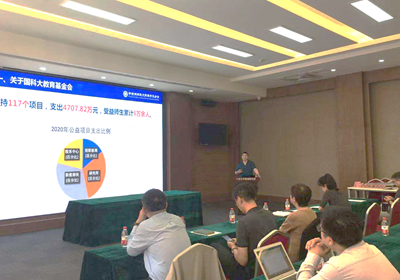 趙碩做了題為“踐行立德樹人、服務科教融合”的報告,詳細介紹了國科大教育基金會的發展歷程和工作開展情況,講解所級基金運作原則和配比政策,分享了流程化管理經驗;研究生部副主任熊川男介紹了大連化物所基本情況和研究生教育現狀;大連化物所相關職能部門人員與國科大教育基金會來賓就如何設立和運用所級基金等事宜進行了交流討論。