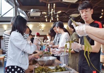 “包粽子體驗活動”中,食堂工作人員現場教學,悉心指導,同學們有模有樣地學包粽子,不僅增強了動手能力,也體會到了手工制作的樂趣;“傳統飲食文化答題活動”則讓大家對中國傳統飲食文化有了更深的了解,切身感受到了傳統文化的魅力。