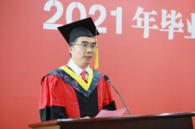 劉中民作了題為《與第二個百年偉大目標同頻共振 勇做新時代科技自立自強新青年》的致辭,向畢業生表達了最熱烈的祝賀!向畢業生的父母和導師致以崇高的敬意。劉中民表示當今世界面臨系統性大變革,科技創新已經擺在國家發展全局的核心位置。作為變革的親歷人,劉中民勉勵同學們要走好人生路,面向新時代與國家的發展同頻共振:一是要牢記熱愛祖國和人民,把自己的人生道路融入民族偉大復興的新征程中。二是要牢記科學精神和批判性思維,堅持實事求是,不懈追求真理。三是要牢記自立自強,做新時代新征程中的新青年。