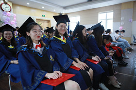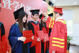 在歡快的樂曲聲中,畢業生導師親自為學生頒發了畢業證書,呂雪峰為畢業生一一撥穗扶正流蘇,授予學位。