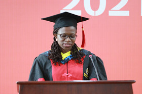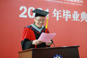 我所導師代表李福利研究員與同學們一起回顧了祖國從苦難到強大的曲折歷程,結合當前科技競爭趨勢,勉勵大家發揚新時代科學家精神,科技報國。畢業生代表趙志明、畢業留學生代表Jessica Juweriah Ibrahim回顧了求學路上的點點滴滴,深情表達了對研究所、導師辛勤培養和關心愛護的感激之情以及對未來的美好期許。