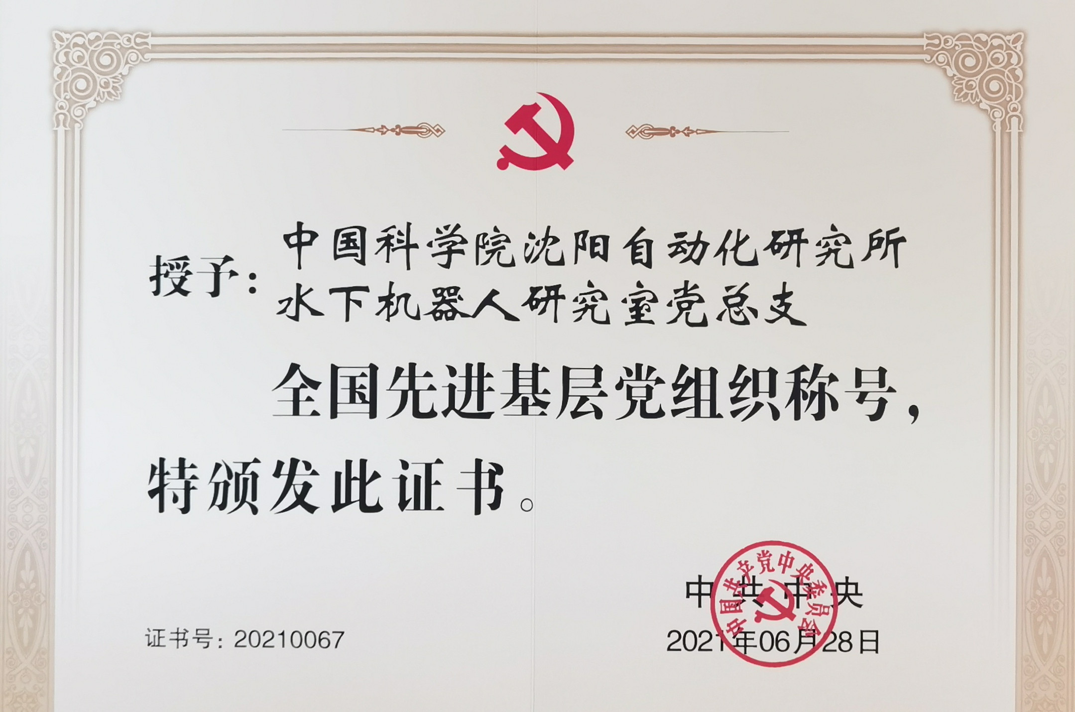 6月28日,全國“兩優一先”表彰大會在北京人民大會堂舉行。中國科學院沈陽自動化研究所水下機器人研究室黨總支部,在表彰大會上被中共中央授予全國先進基層黨組織榮譽稱號,黨總支書記李智剛赴京領獎。