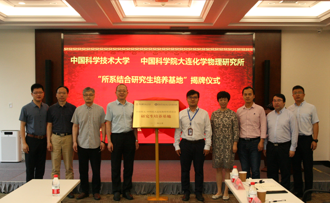 6月29日,中國科學技術大學與中國科學院大連化學物理研究所“所系結合研究生培養基地”揭牌儀式在交流中心第四會議室舉行。中國科學技術大學化學與材料科學學院執行院長劉世勇、化學與材料科學學院副院長鄧兆祥、研究生院所系結合辦公室副主任夏清泉等;大連化物所副所長王峰,研究室(部)、職能部門相關人員參加活動。揭牌儀式由大連化物所研究生部主任熊博暉主持。