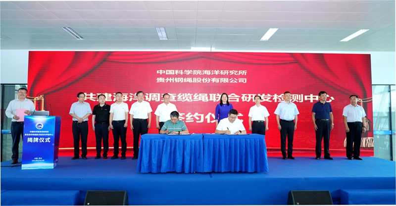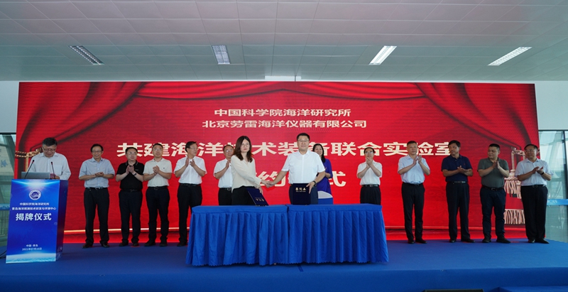 儀式上,中國科學院海洋研究所分別與中國計量科學研究院、中國海洋工程研究院(青島)、貴州鋼繩股份有限公司、北京勞雷海洋儀器有限公司、中國地質調查局青島海洋地質研究所、挪威Aanderaa公司、德國CONTROS公司等簽約,并為共建的安德拉技術支持與服務中心、康楚斯技術支持與服務中心、海洋儀器計量校準聯合實驗室、海洋調查纜繩聯合研發檢測中心、海洋技術裝備聯合實驗室等5個實驗室揭牌。
