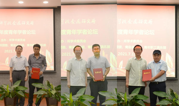 經評委現場打分,本次論壇共評選產生一等獎2名(獲獎人:王政彬、楊勇強),二等獎4名(獲獎人:劉洋、高明浩、昝宇寧、王斌),三等獎6名(獲獎人:姚婷婷、馬會、徐偉、張瑞、王旻、羅頤秀),其余報告人獲得紀念獎。同時,論壇通過職工和研究生掃碼投票的方式推選出昝宇寧博士為本次論壇的“最佳人氣獎”報告人。左良所長和徐巖書記分別為一、二、三等獎獲獎者和“最佳人氣獎”報告人進行了現場頒獎。
