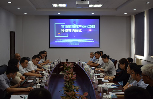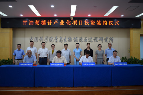 8月26日上午,樂通資本-藍(lán)色智庫-中科院青島能源所-中科藍(lán)智甘油葡糖苷產(chǎn)業(yè)化項(xiàng)目投資簽約儀式在研究所舉行。青島市科技局基礎(chǔ)研究處處長李欣,嶗山區(qū)政府副區(qū)長許哲,嶗山區(qū)委組織部副部長廉潔,嶗山區(qū)科創(chuàng)委科技創(chuàng)新部副部長賈文生,樂通資本董事長鄒晨陽、副董事長張少雄,藍(lán)色智庫(青島魯信馳騁創(chuàng)投)總經(jīng)理王奎旗,青島能源所黨委書記彭輝、副所長呂雪峰、黨委副書記許輝,中科藍(lán)智董事長張凱、總經(jīng)理段仰凱,研究所微生物制造工程中心、知識(shí)產(chǎn)權(quán)與成果轉(zhuǎn)化處等有關(guān)部門人員出席簽約儀式,共同見證四方簽約成功,達(dá)成千萬級(jí)戰(zhàn)略投資。