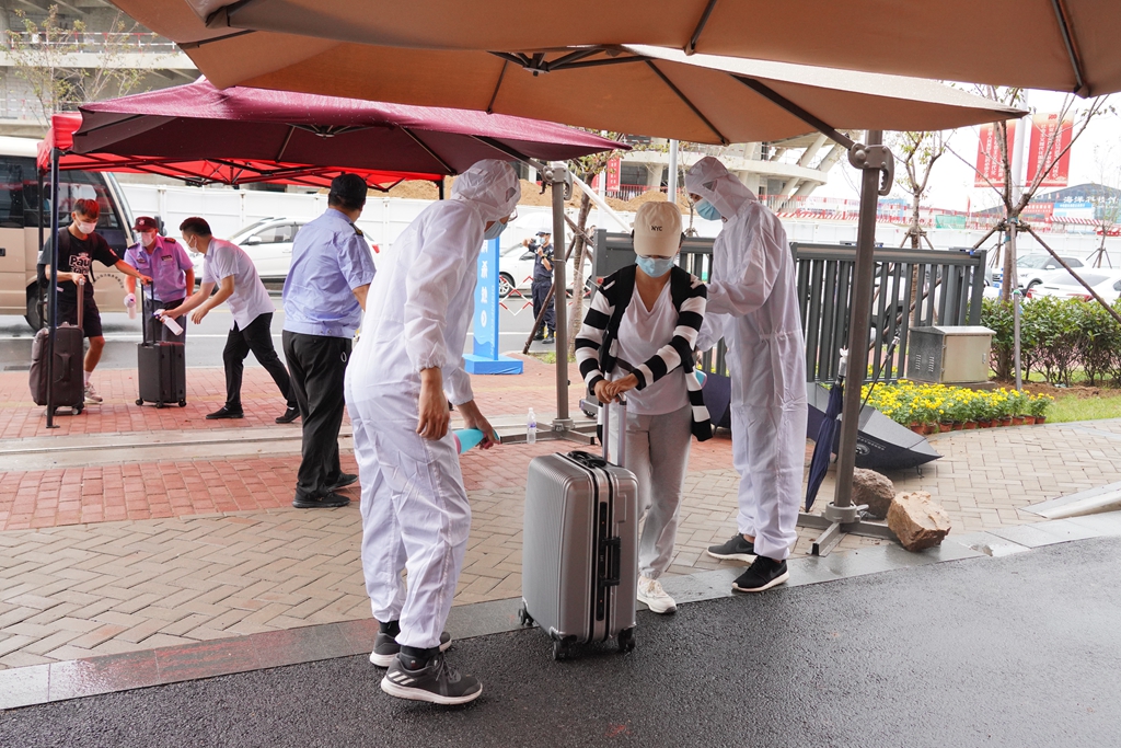 早上7點半,學院入口處、報到大廳、宿舍樓各處工作人員及志愿者全部到崗,準備迎接同學們的到來。8點開始,陸續有研究生前來報到。先在入口處進行行李消殺和寄存,然后進入報到大廳,在志愿者引導下測量體溫、查驗健康碼、進行核酸檢測,有序辦理入住、發放資料、網絡開通等各項手續。