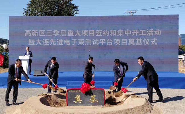 9月22日下午,高新區三季度重大項目簽約和集中開工暨大連先進電子束測試平臺項目奠基儀式在英歌石科學城舉行。市委常委、高新區黨工委書記曾波,高新區管委會領導孫龍業、趙百強、劉源波、遲旭輝;中國科學院大連化學物理研究所副所長李先鋒、大連光源科學研究室執行主任張未卿研究員出席儀式。