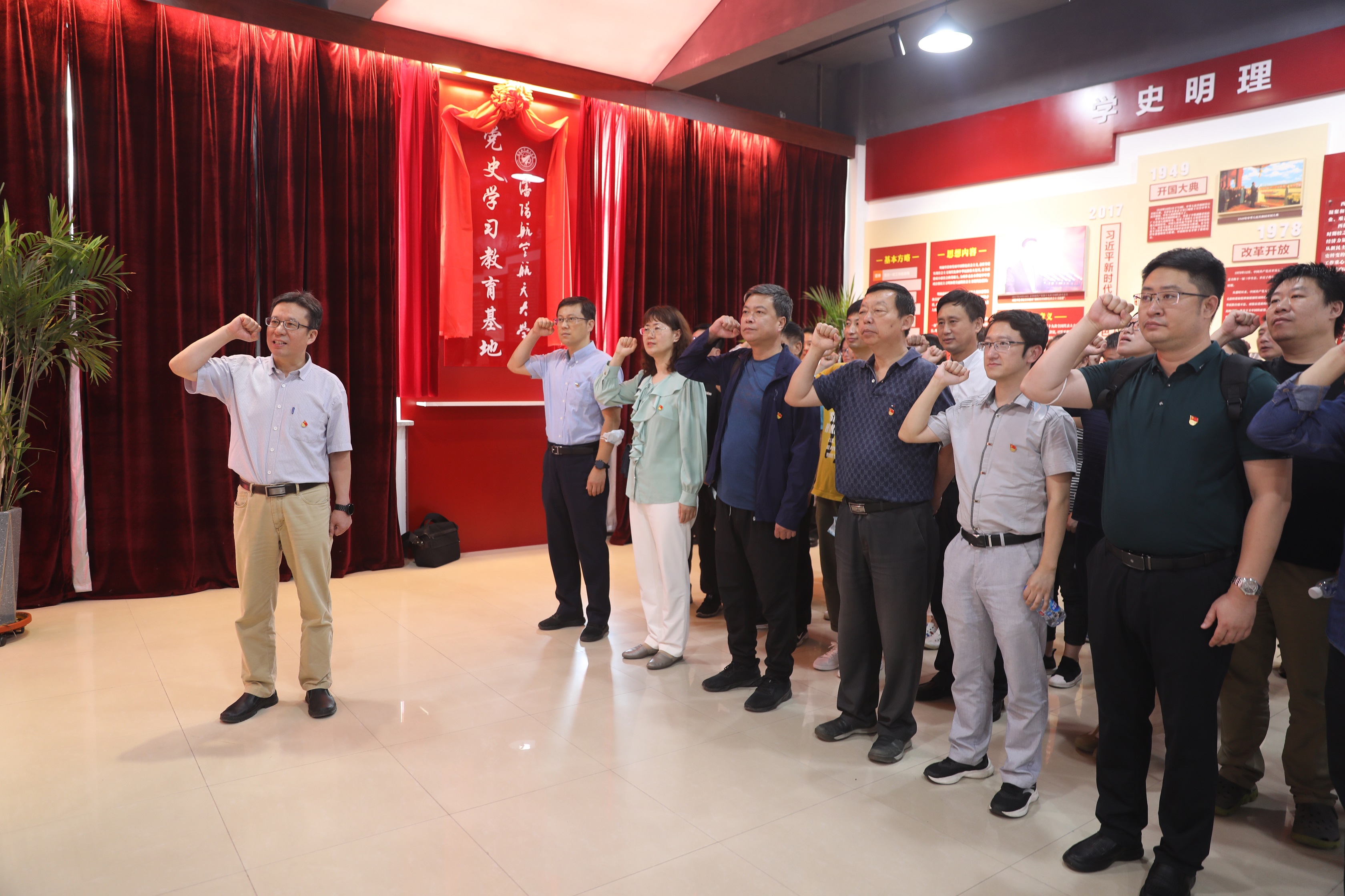 參觀過程中,黨員們深刻領悟到中國革命時期、新中國建設時期、改革開放時期和十八大以來中國共產黨人所匯聚凝結起來的偉大建黨精神,紛紛表示要把中國共產黨人精神譜系中一以貫之守初心、一如既往擔使命、一鼓作氣不松勁作為科研創新道路上的指引,讓偉大建黨精神引領科研報國的奮進之路。在黨旗下,梁波帶領全體黨員再次莊嚴宣誓——為共產主義事業奮斗終身……